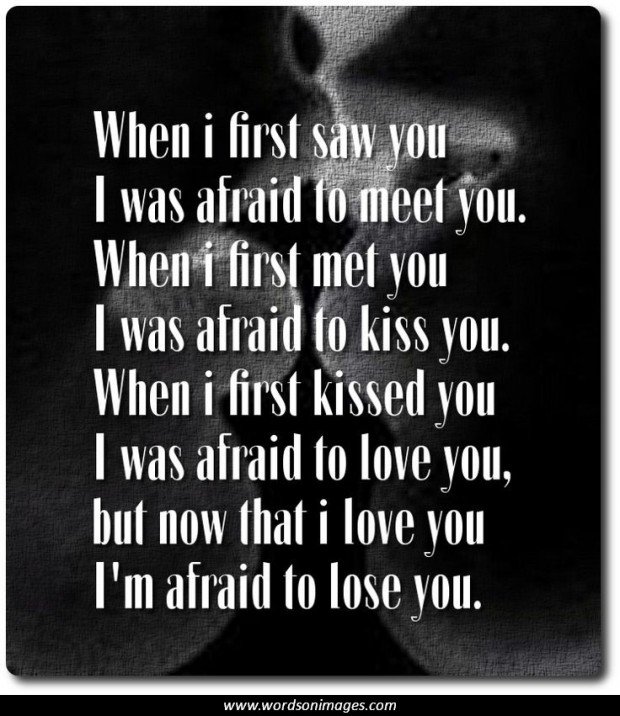 Scared Of Love Quotes. Top Scared Of Love Quotes In a more evolved world, one a little more alive to the Greek ideal of love, we would perhaps know to be a bit less clumsy, scared, and aggressive when wanting to point something out, and rather less combative and sensitive when receiving. Love doesn't end. list of Scared to Love Quotes That You Can Share. -It scares me even to think about you because I know that it hurt me all over again. -Anonymous. -The monsters that are present in my head are way too scared to fall in love all over again. -Anonymous. -I am scared to fall in love again because I know someone will break my heart this time as well.